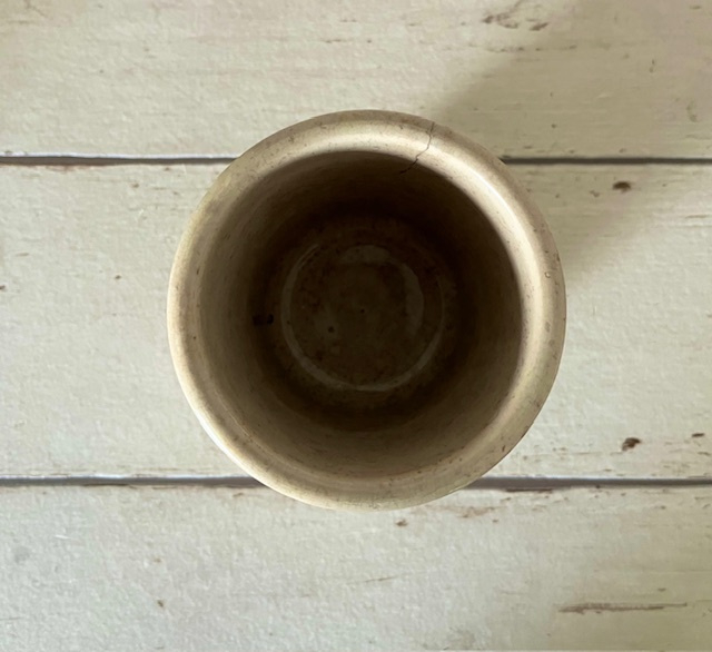 32230. Deze pot (de donkere en linkse op de 1e foto) laat de geschiedenis goed zien, er is bebotering, een haarscheur en er zijn onderaf wat chipjes afgegaan. Omstreeks 1910-1920 geproduceerd in/door Lunéville in opdracht van Félix Potin. De pot laat de fabriek in Pantin zien en de stoomfabriek à la Villette Paris. Félix Potin was een kruidenier die voor het eerst ging verpakken en distribueren. Afmetingen: hoogte 14 cm, doorsnede 9,5 cm. Gewicht 675 gram.