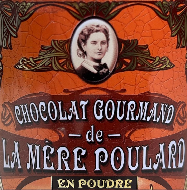 32185. Frans donker oranje rijk gedecoreerd blik voor cacaopoeder. Het blikje heeft een dubbele sluiting, zo bleef de cacaopoeder lang vers. Herkomst Mont Saint-Michel. Hoogte 12 cm, doorsnede 8 cm/ Gewicht 100 gram.
