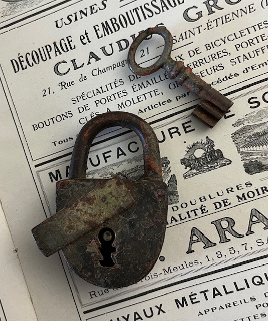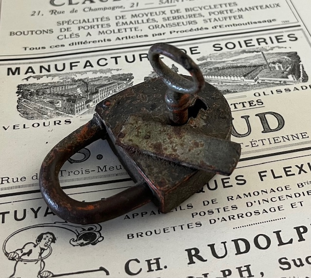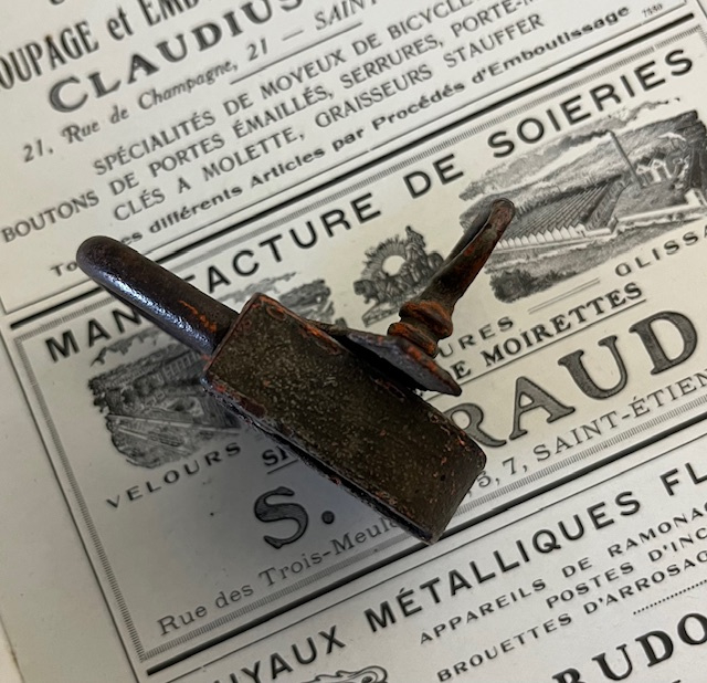32270. Mooie patina ook al door diverse kleuren verf. Afmetingen: hoogte 7 cm, breedte 4 cm dikte 1,5 cm. Gewicht 90 gram.