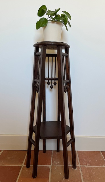 Art deco hoog plantentafeltje met twee plateaus, Frans handwerk