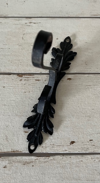 32645. Decoratieve zeer stevige zwarte houder, in goede vintage staat. Afmetingen: hoogte 32 cm, diepte 15 cm, maximale breedte 4,5 cm. De prijs is voor de set.