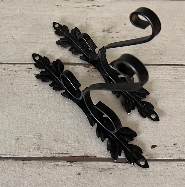 Frans klassiek smeedijzeren muurhouder wandhouder voor plant o.i.d. (2x)32645. Decoratieve zeer stevige zwarte houder, in goede vintage staat. Afmetingen: hoogte 32 cm, diepte 15 cm, maximale breedte 4,5 cm. De prijs is voor de set.