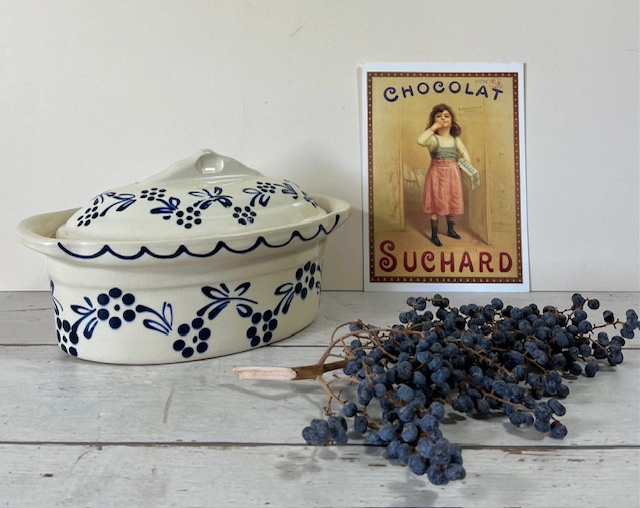 Elzasser terrine Soufflenheim paté terrine Elzas32615. Inhoud 1 liter. Prachtig in een landelijke keuken, unieke uitvoering. Handgemaakt, beschilderd en geglazuurd. In uitstekende vintage staat, zonder schade. Afmetingen: lengte 26 cm, breedte 15 cm, hoogte 14 cm (zonder deksel…